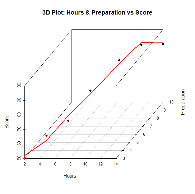 xlab = "Hours", ylab = "Preparation", zlab = "Score",